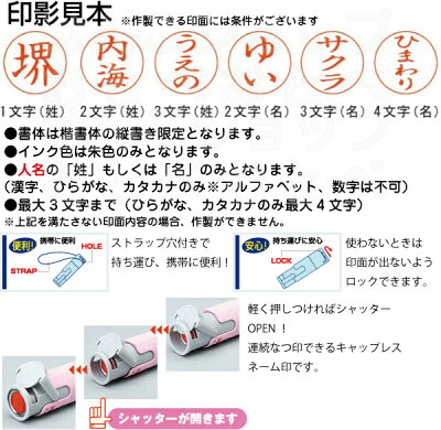 おすと同時にシャッターが開き、ワンタッチでなつ印が可能なキャップレスタイプです。