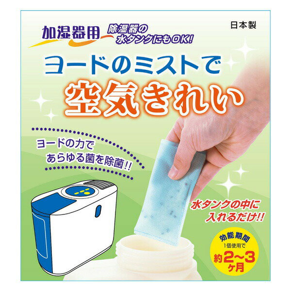 ヨウ素 ヨード 加湿器 除湿機 除菌 ヨードのミストで空気きれい 日本製 水タンクの中に入れるだけ 黒ずみ 防止 カビ カビ予防 防カビ 消臭 空気 空間 梅雨時期 室内干し ウイルス対策 1個入り 効能期間2〜3ヶ月 ポイント消化 詳しく見る